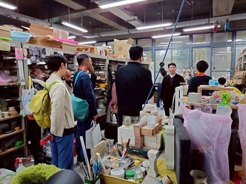 會後,在工藝設計學系梁家豪系主任親自帶領下,參訪團一行前往工藝設計學系進行實地參觀。該系在課程規劃上兼顧傳統工藝精神與當代設計思維,重視材質研究、手作實踐與創新應用,令人印象深刻。