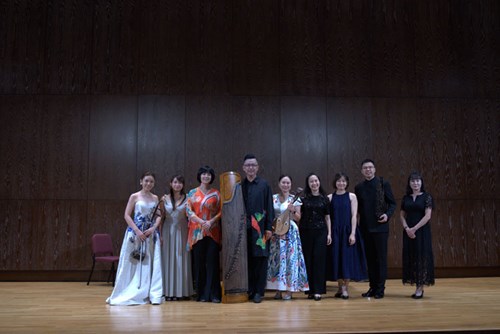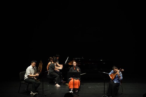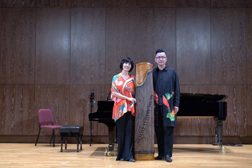 演出中,由鋼琴合作藝術研究所與中國音樂學系教師輪番登臺,包括林亦輝老師分別與潘怡儀老師合作演出趙俊毅《流》笙小協奏曲及《映月》,展現笙在當代創作中多層次的音色可能;張瑟涵老師與蘇俐方老師詮釋王建民《第六二胡狂想曲》,展現二胡高難度技巧與情感張力;陳怡蒨老師與吳明靜老師合作黎俊平《山歌與迴旋》,以柳琴與鋼琴描繪臺灣客家音樂意象;黃俊錫老師則與洪珮綺老師合作演出《月兒高》與《蘆葦蕩》,在古箏與鋼琴的對話中展現傳統與當代交會的聲響層次。