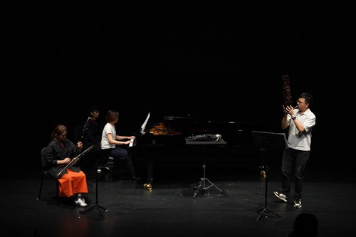 三場巡演皆獲觀眾熱烈回響,現場氛圍專注而細膩。鋼琴與國樂器原屬不同訓練系統,卻在舞臺上展現彼此傾聽、呼應與融合的高度默契,使每首作品呈現出豐富且具層次的藝術面貌。《樂景》不僅是一場音樂演出,更是一項跨域共創的實踐成果,具體展現國立臺南藝術大學在音樂專業教學、藝術研究與文化對話上的整合能量,亦呼應本校長期以「專業深耕、文化交融、創新前瞻」為核心的藝術教育願景。